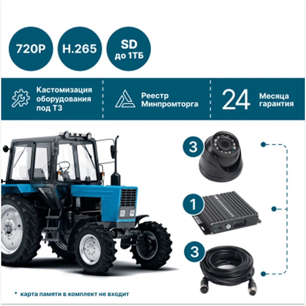 Комплект видеонаблюдения для сельхозтехники на 3 камеры NSCAR AE301_SD